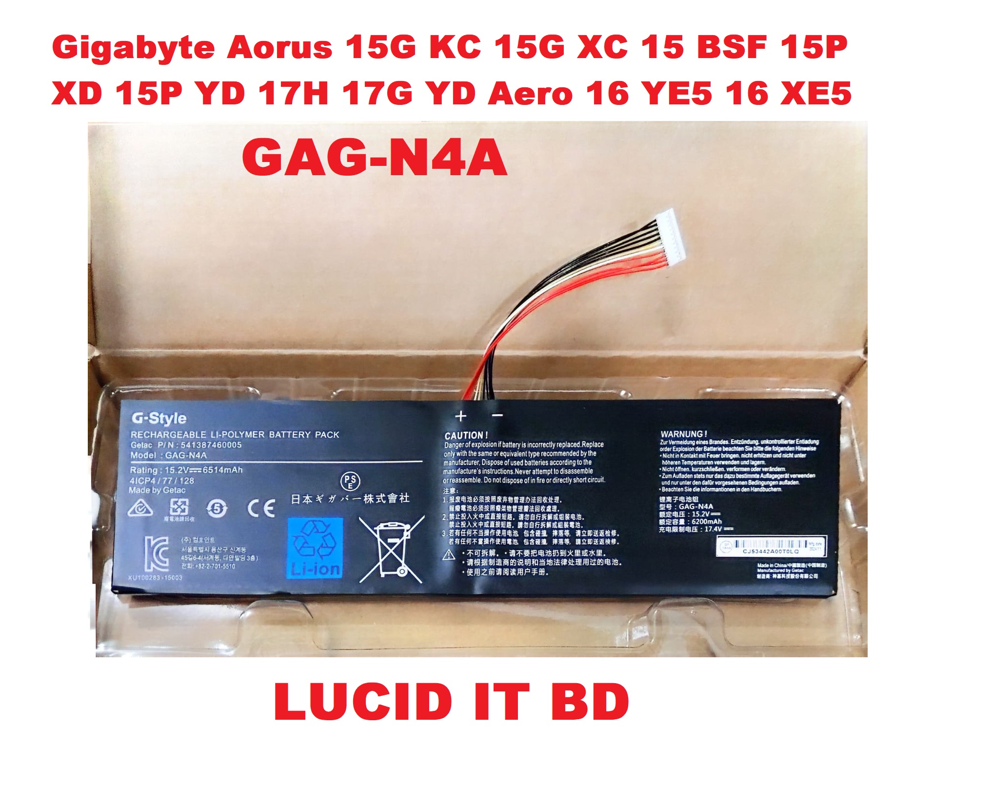 GAG-N4A 6514mAh Laptop Batteries for Gigabyte Aorus 15G KC 15G XC 15 BSF 15P XD 15P YD 17H 17G YD Aero 16 YE5 16 XE5