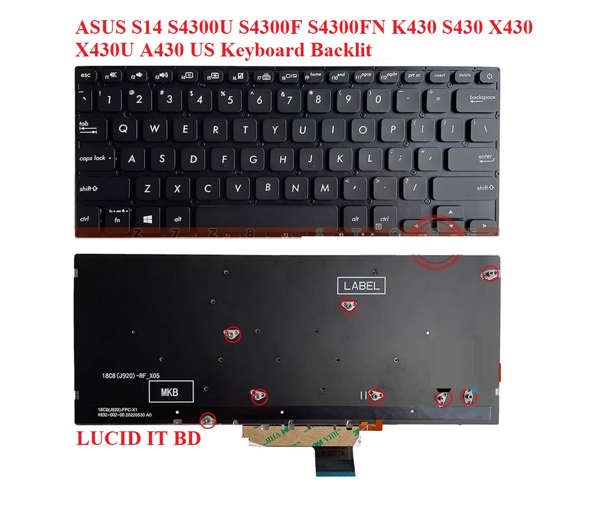 New ASUS S14 S4300U S4300F S4300FN K430 S430 X430 X430U A430 US Keyboard Backlit