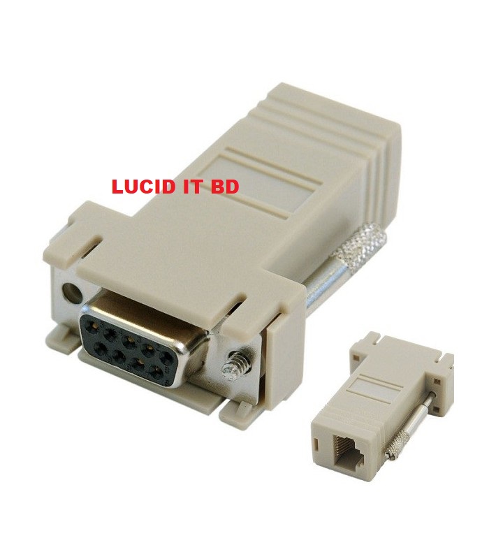 RJ45 (female) to DB9 (female) adaptor block for use with the Redpark L2 or C2-RJ45 cable to convert it for use with DB-9 console ports. Use this adaptor for connecting to Cisco, Juniper, HP or other serial console ports that require a DB9 connection.
